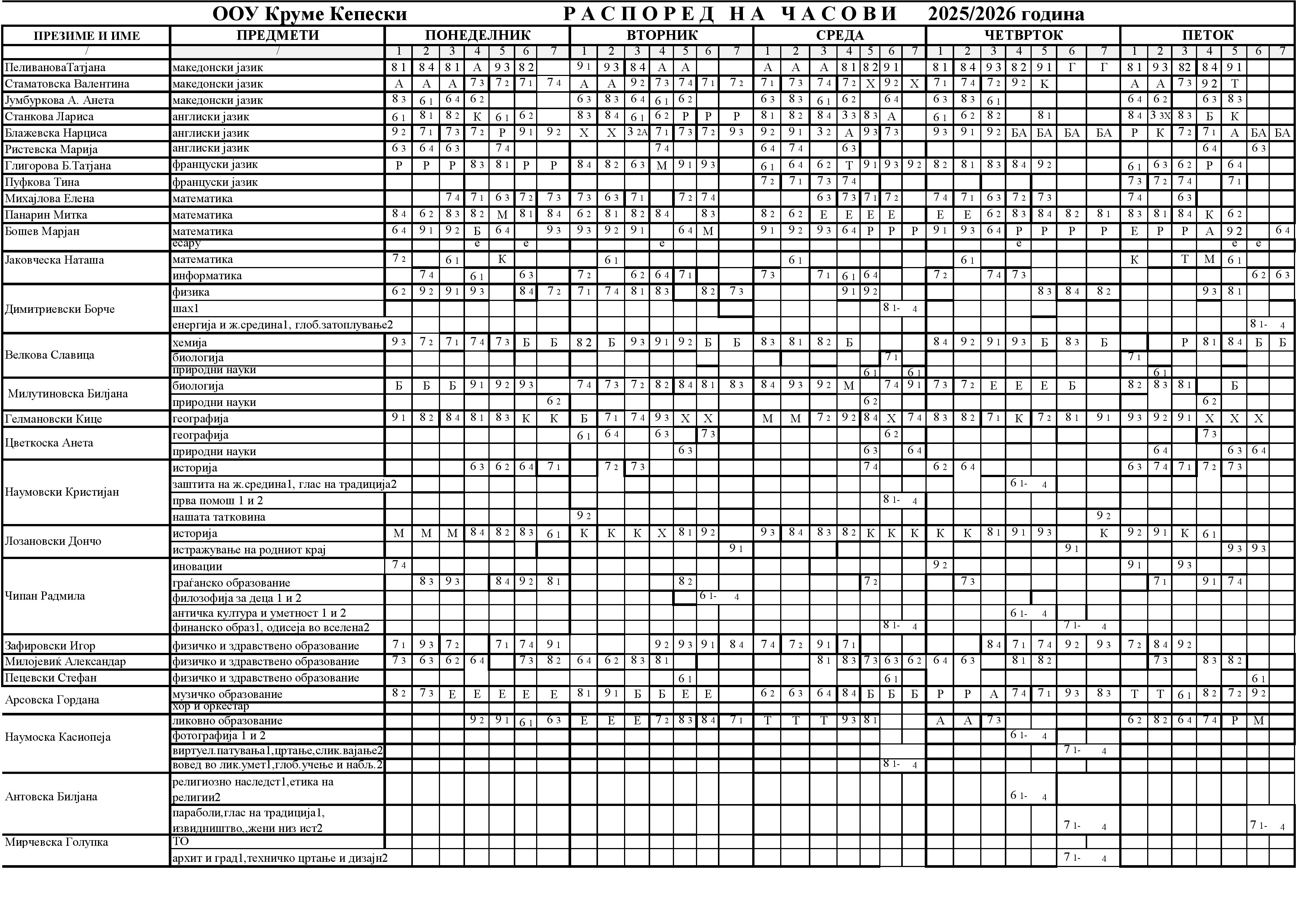 Raspored casovi predmetna